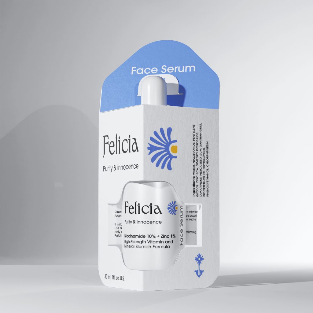 Felicia, won first place in the sustainability category in the Pro Carton 2025 competition. It is new, alternative packaging solution for the brand’s cosmetics products. Felicia aims to achieve the highest standards of sustainability. It reduces environmental impact and completely eliminates the use of plastics. The design uses less material compared to existing packaging on the market. Thanks to its non-standard design, the packaging uses a smaller template on a sheet of paper. This increases the number of units produced and shortens production time. Graphic elements focus on minimalism. The product’s simple, elegant form, reflecting purity, is paramount. Furthermore, the reduced number of graphics contributes to ink savings. The design is easy and straightforward to assemble, requiring no glue. All fasteners are replaced with tuck-flap closures.